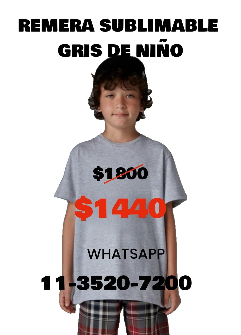 Remera para sublimar Gris Niño